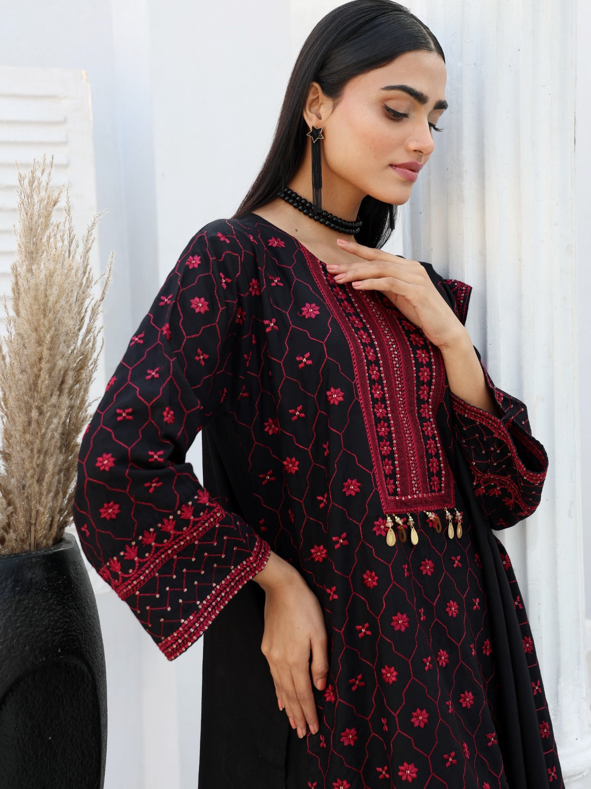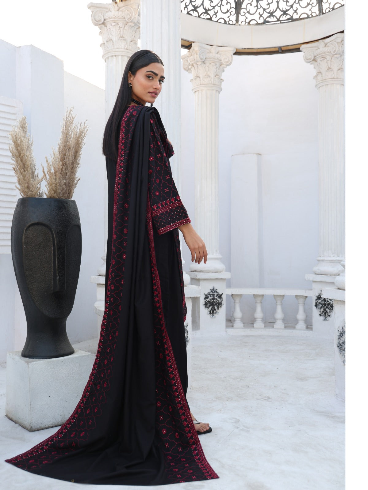 Color: Jet Black with Crimson Red Embroidery