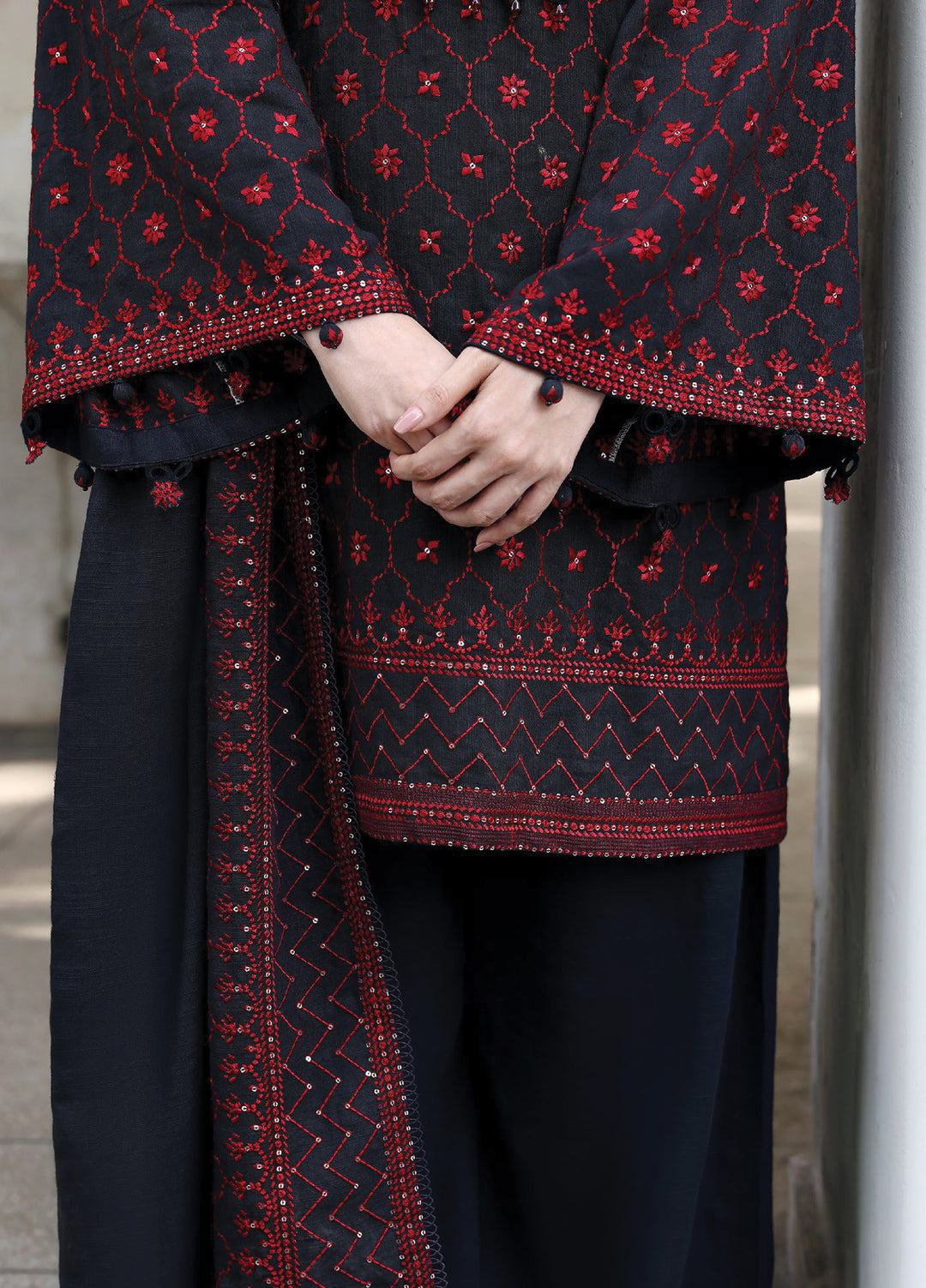 Work: Heavy Traditional Embroidery (Front, Sleeves & Border)