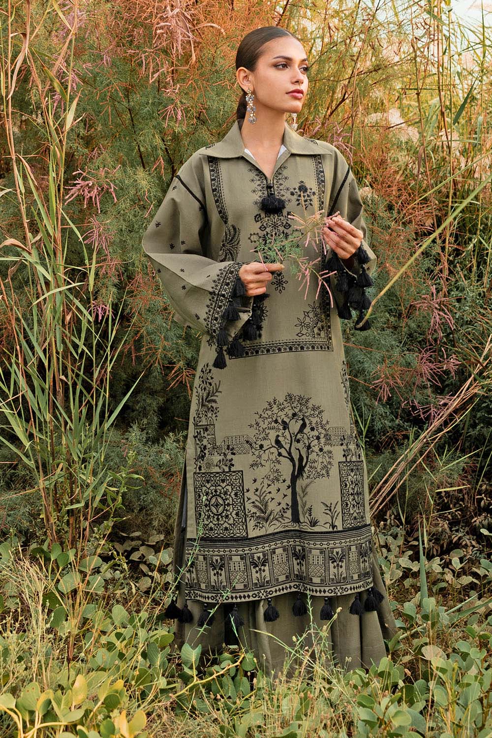 Experience timeless winter elegance with this beautifully crafted Manadora outfit. The ensemble features a fully Digital Printed shirt front, back, and sleeves, adorned with intricate borders that add a touch of sophistication. The embroidered motifs and tassel details give it a rich traditional appeal, perfect for cozy winter days. Paired with a dyed Manadora trouser, this 2-piece set combines comfort and class effortlessly.